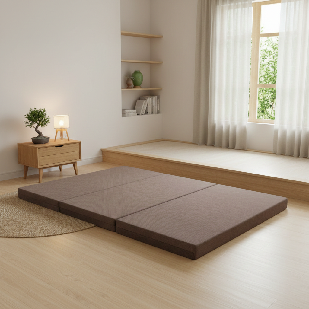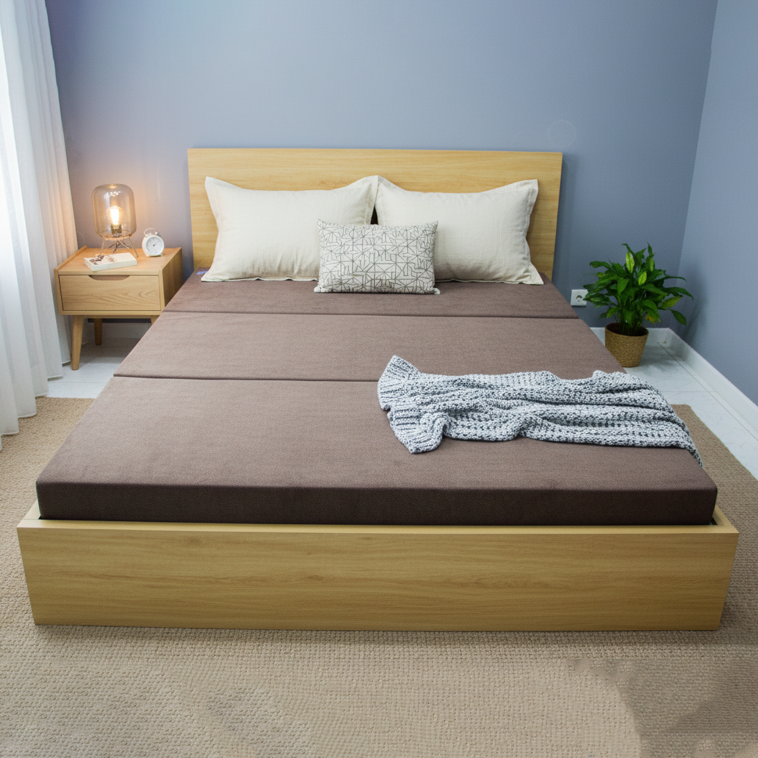 - Nệm có thể gấp gọn làm sofa, phù hợp cho phòng ngủ, phòng trọ, căn hộ nhỏ. Trọng lượng nhẹ, dễ di chuyển và sắp xếp.